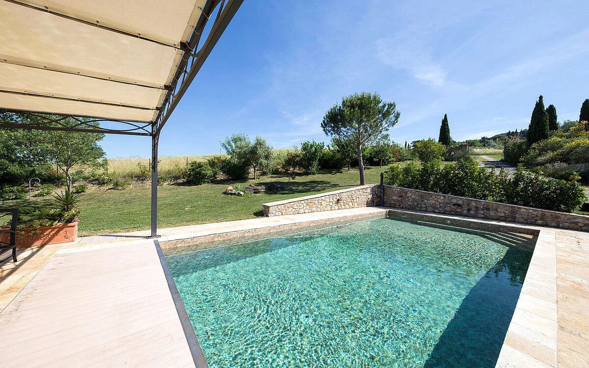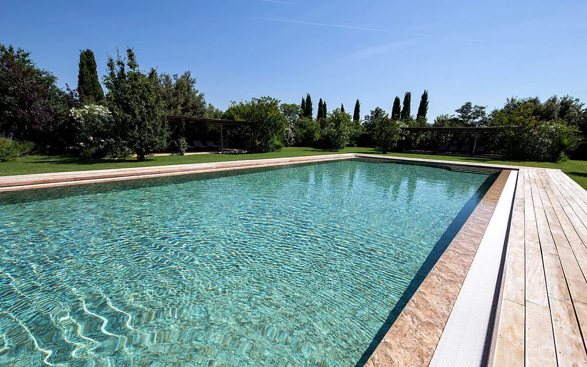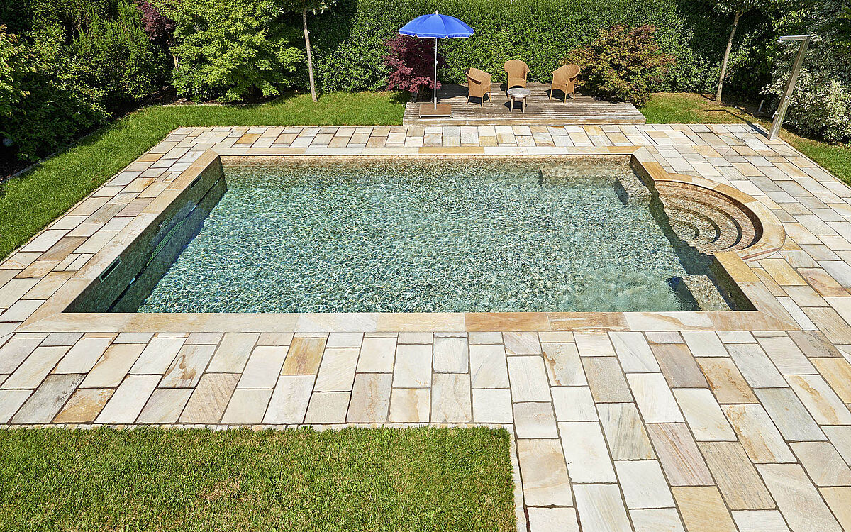 Le naturel de la pierre rustique pour une eau aux multiples tonalités.